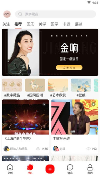 艺术家专区:查看热门艺术家信息与代表作,支持关注与互动。