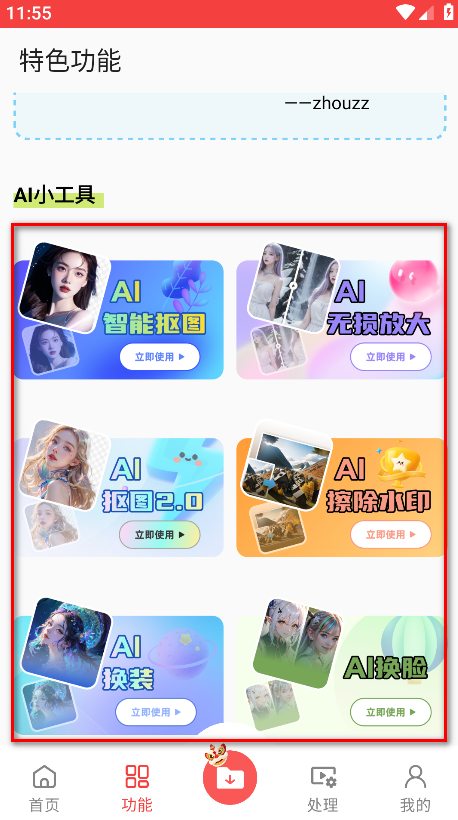 4.回到首页,点击下方的功能。