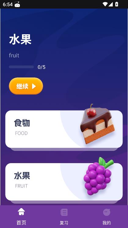 进入首页就选择想要学习的词汇点击就能开始学习了。