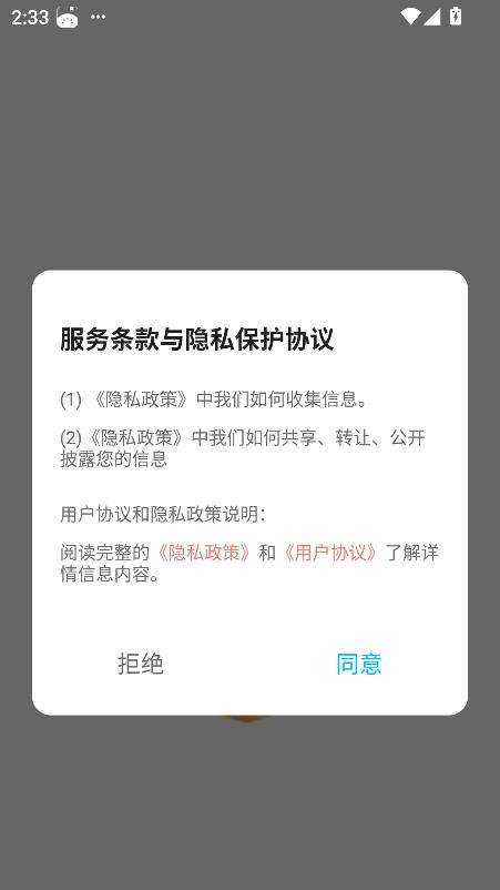 阅读服务条款与隐私保护协议并点击同意。