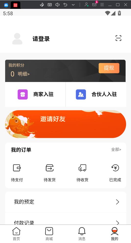 点击头像进行登录/注册,然后返回软件点击消息,注意可以在我的页面查看积分哦!