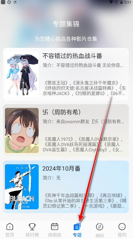 7.点击专题,就会显示根据专题分类的动漫资源哈。