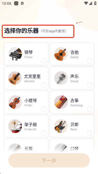 登录后,选择自己正在学习的乐器
