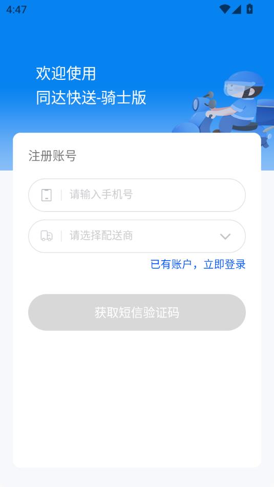 输入手机号和配送商点击获取短信验证码,点击登录系统会自动注册账号。
