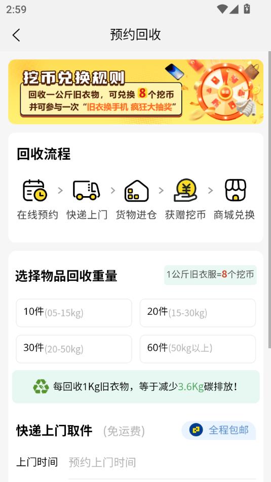 在线预约回收:填写回收信息后系统自动匹配快递员,安排时间上门取件。