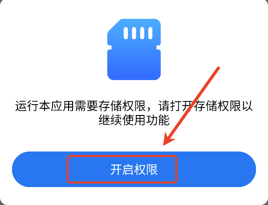 2、运行本应用需要存储权限,请打开存储权限以继续使用功能。