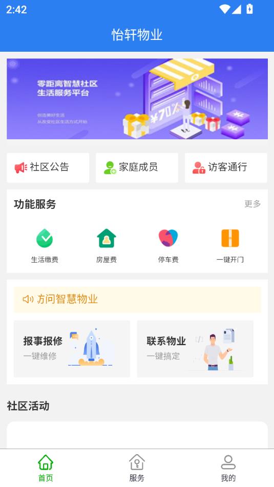 怡轩物业app是款一站式智慧物业管理平台,集成集成物业费缴纳、停车费支付、报修申请等众多物业服务功能,通过绑定业主身份认证,就能通过平台轻松办理或申报各种社区业务,享受更加便捷的生活体验。