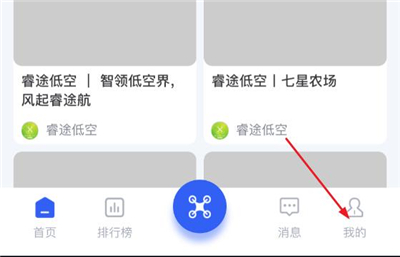 1、下载并安装睿途低空app,打开之后在首页右下方点击我的;