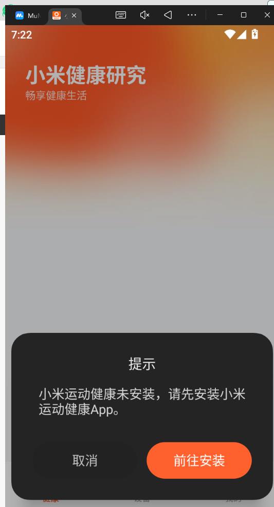 可以看到提示,需要与小米运动健康进行绑定使用。