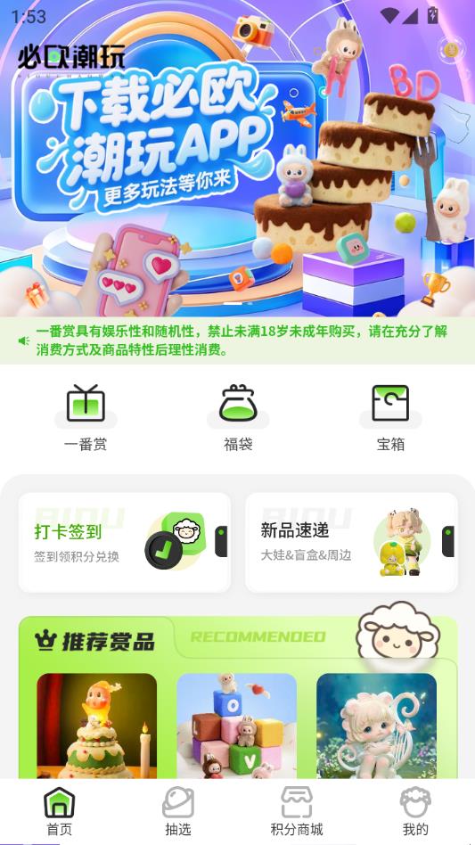必欧潮玩app是款专注于潮玩商品的线上盲盒购物平台,将传统线下扭蛋机、一番赏的随机抽取乐趣搬到线上,让用户足不出户就能体验开盒的惊喜刺激感,并且所有商品都确保为正品,涵盖手办、周边等众多商品类型。