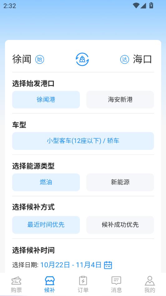 徐闻港购票平台app是款专注于往返广东↔海南的旅客打造,提供从订票到出行一站式服务,提供多种出行方式,包括高铁、飞机、客车等,并且拥有详细的时间选择,当所需航班无票时支持提交后补订单,有效提升购票成功率。