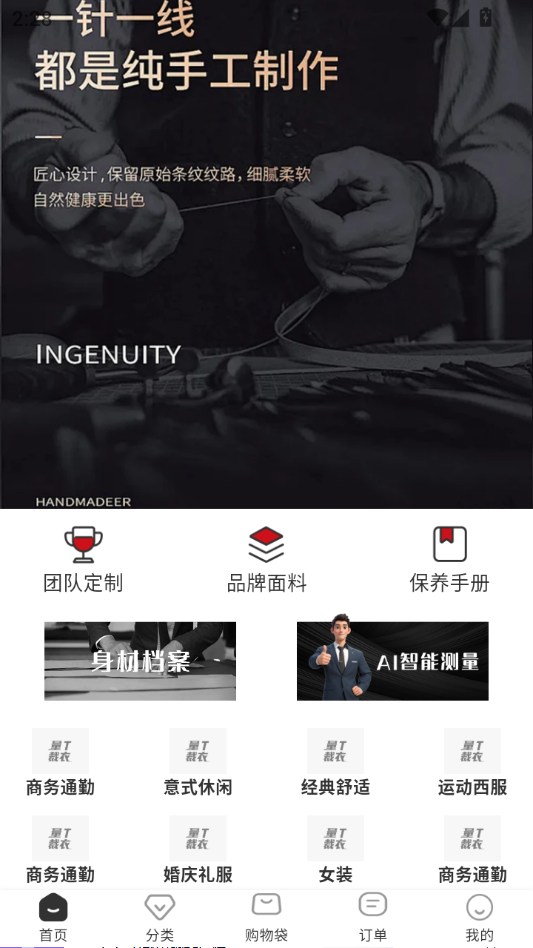 精选来自意大利、英国、日本等地的顶级面料品牌。