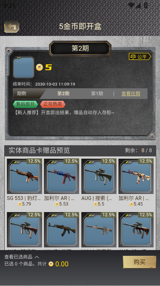 2、合规盲盒玩法(禁未成年人参与,用金币购买,公示饰品清单与概率。
