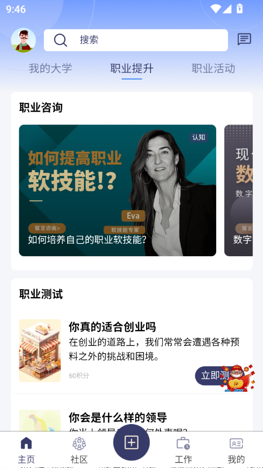 职映app是款集“人脉+职业教育+技能提升”等多项就业生态服务平台,通过连入AI大模型,为用户定制化职业能力发展地图,让用户不再千篇一律的盲目学习发展,而是通过发现自己的特长和市场变化,找到合适的路线。
