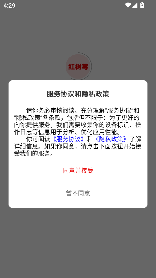 阅读服务协议和隐私政策,点击同意并接受。