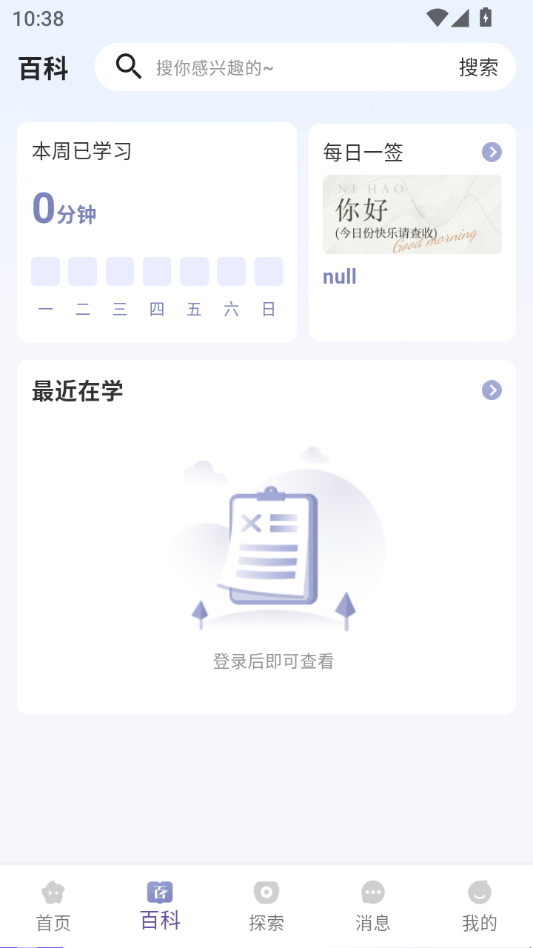 在百科页面通过登录可以查看学习状况。