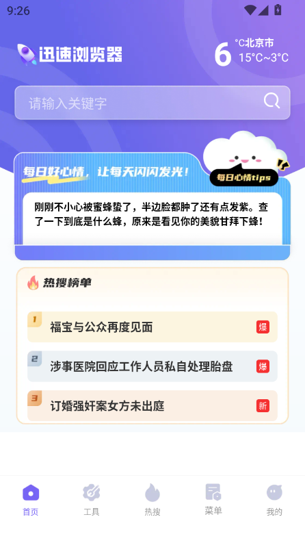 迅速浏览器app是款轻便实用的手机浏览器,采用了最新的内核引擎,提供了多种搜索引擎功能,用户可以根据自己的需求选择实用,其不仅拥有流畅的网页浏览速度,还不会时不时跳出烦人的弹窗和广告,提高浏览体验。
