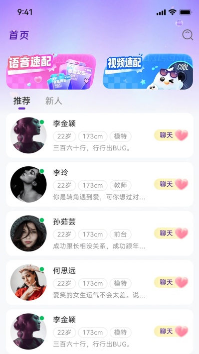 聊下app是款缓和的聊天交友模式,旨在为用户打造一个和谐、趣味、真实的交友社区,不仅支持一对一私聊,还能够通过动态、评论参与其他多人话题探讨,所有内容都会进行审核,确保内容纯净健康。