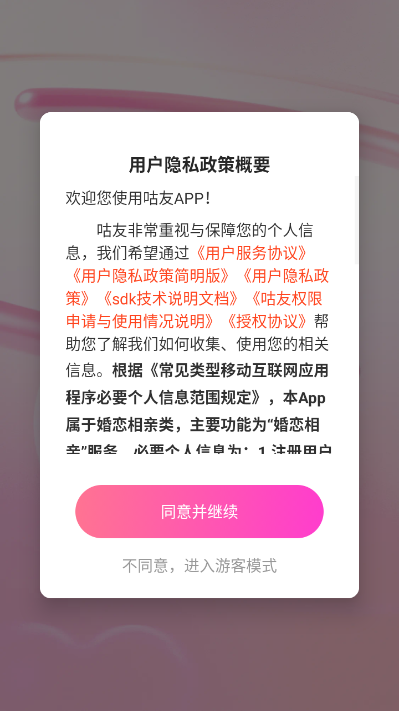 咕友app是款真人在线兴趣交友平台,倡导绿色、健康的社交氛围,提供多元化互动玩法,致力于满足每一位用户的交友喜好,帮助用户在安全的环境中寻找聊得来的朋友,通过认证的方式减少机器人或者虚假账号的出现。