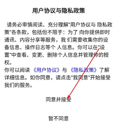 1、下载安装商桥智数app,打开之后点击同意并接受;