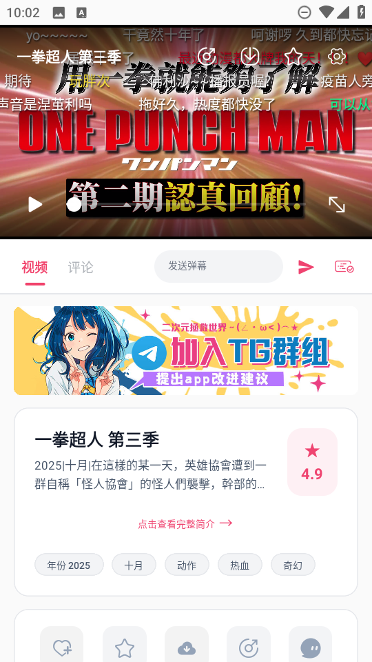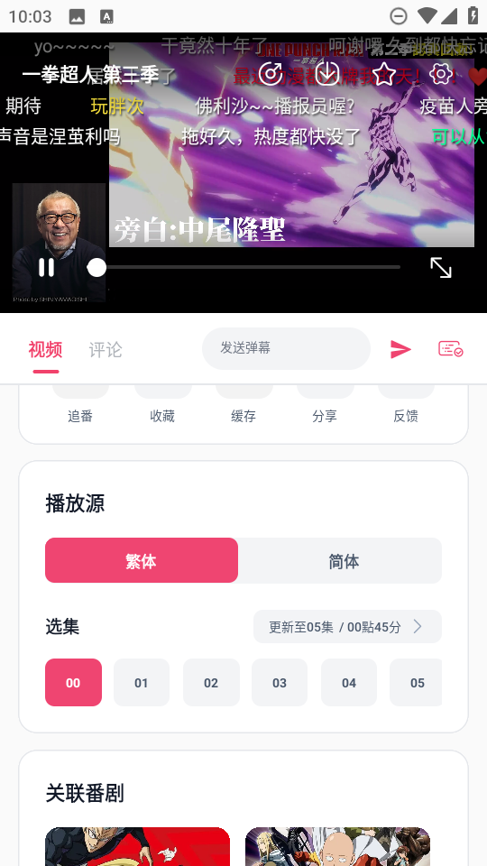 2、接着任意播放一部喜欢的番剧资源,这里以“一拳超人第三季”为例。