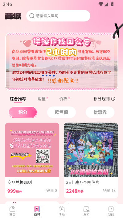 在这里提供了丰富的商品,有的支持使用积分进行兑换。