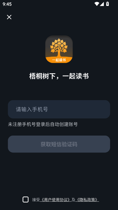 输入手机获取验证码,点击登录,未注册手机号登录后自动创建账号。