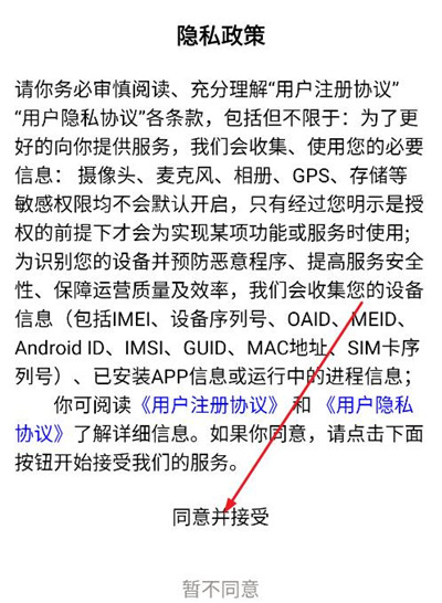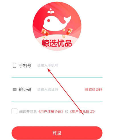 1、下载安装鲸选优品app,打开之后点击同意并接受;