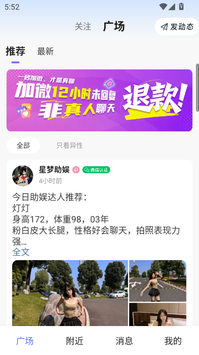 【动态广场】:发布生活动态,点赞评论互动,从线上分享到线下见面,让关系自然升温。