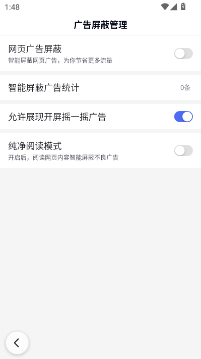 下拉找到并点击广告屏蔽管理。