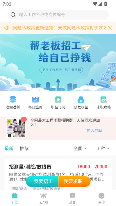 天侠网app是款专注于工程行业的求职招聘平台,包括土木、电力、水利等详细划分,以便不同专业的用户可以快速寻找匹配的工作岗位,所有信息都是经过核验确保真实有效,并且直接和企业HR对接,没有中介。