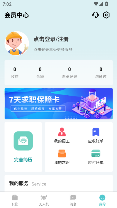 需要先进行登录注册才能体验完整的功能,点击我的。