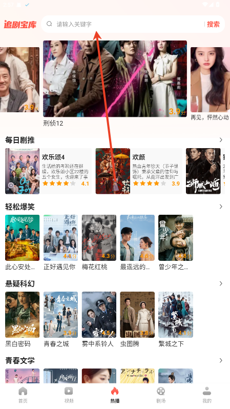 1.打开应用后,首页展示热门剧集,你可以直接从首页选择想看的剧集。