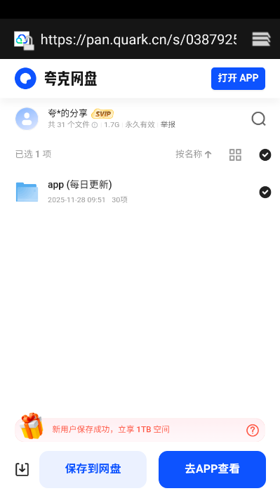悬着想要下载的勾选点击去APP查看或者直接保存进入网盘。