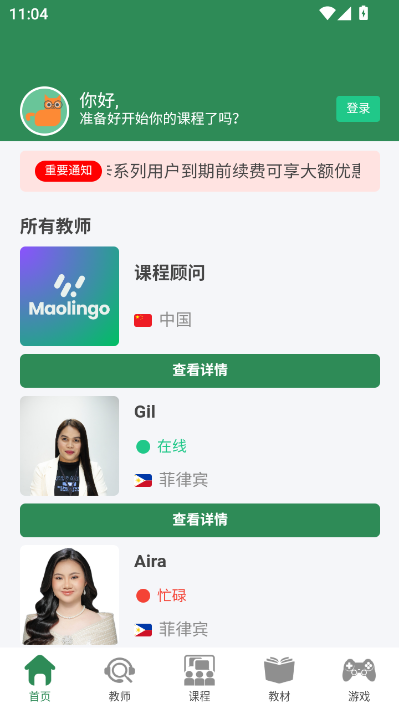 猫邻国app是款专注于真人外教一对一英语教学软件,致力于让英语学习回归真实交流的方式,通过实践和学习结合,让用户能够更加深刻记忆,并且运用到日常情景中,提升听说能力。