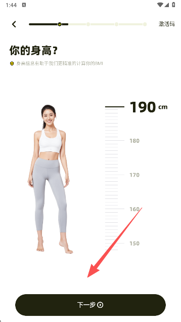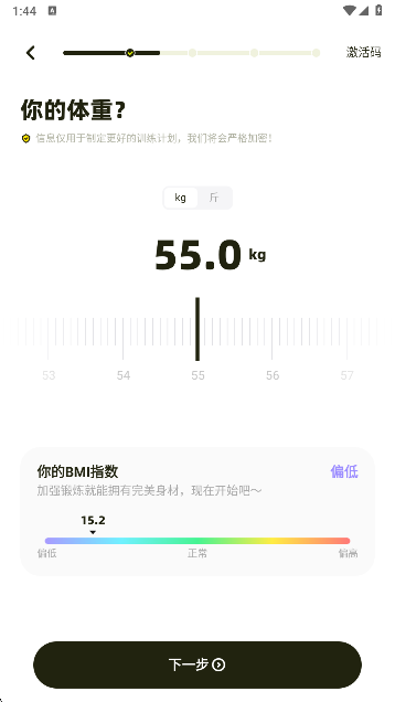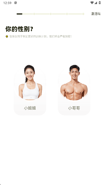 1、第一次进入需要用户填写锻炼信息,您的性别是