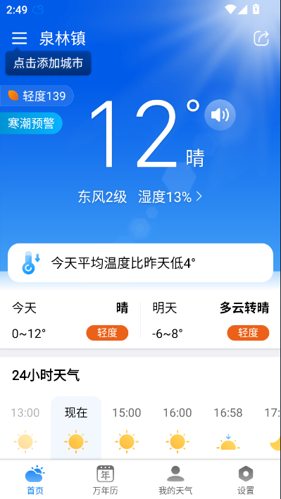 为用户提供有实时天气信息,用户可在此掌握到实时的天气状态信息。