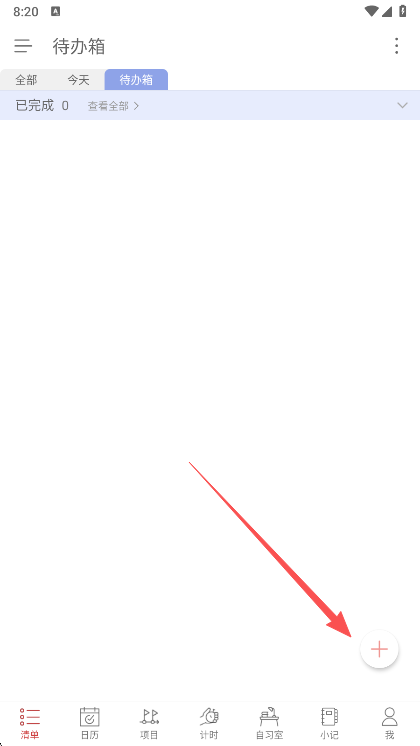 1、清单界面可以查看所有的待办事项,点击加号开始添加吧。