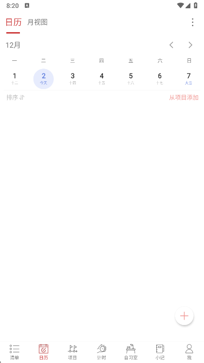 2、来到日历界面,这里的视图是按日期分好的,也可以切换月视图制定每月的日程计划。