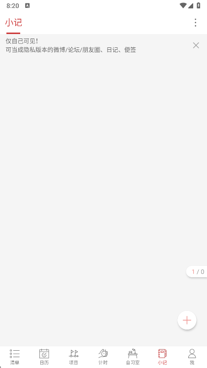 5、小记页面相当于普通的便签功能,随便添加一些备忘事项吧!