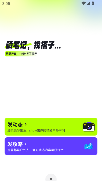 野行客app是款专为户外运动爱好者打造的兴趣社交平台,其聚焦徒步、登山、露营等多元户外场景,在这里不仅可以分享自己自己的攻略和装备建议,还能寻找结伴搭子一起户外旅行。