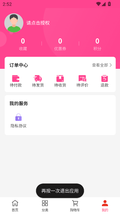 点击购物会自动进入登录页面,需要完成登录注册才可查看。