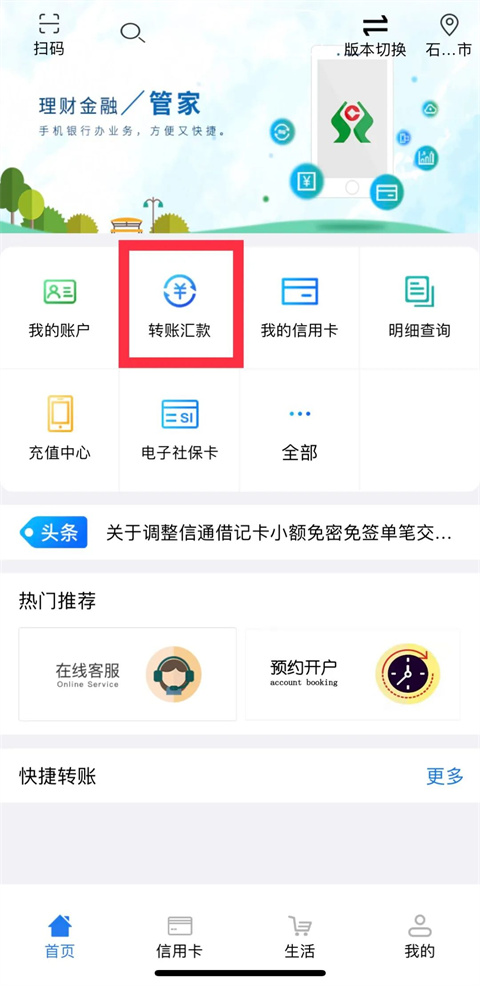提供行内转账、跨行转账、手机号转账、预约转账、批量转账等多种方式。