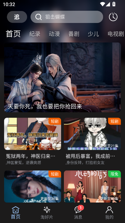 进入首页这里推荐了超多番剧、短剧资源可以观看。