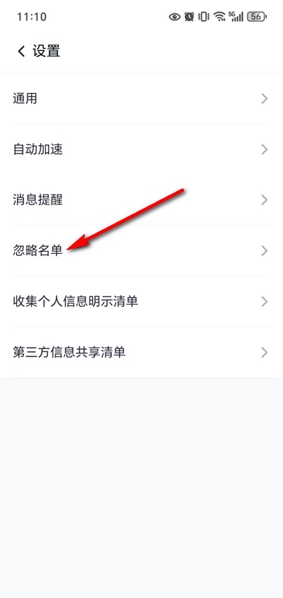 再点击设置进入找到忽略名单。