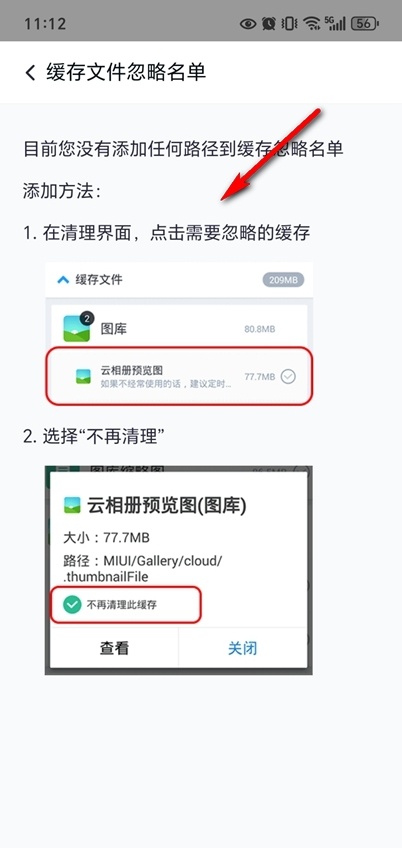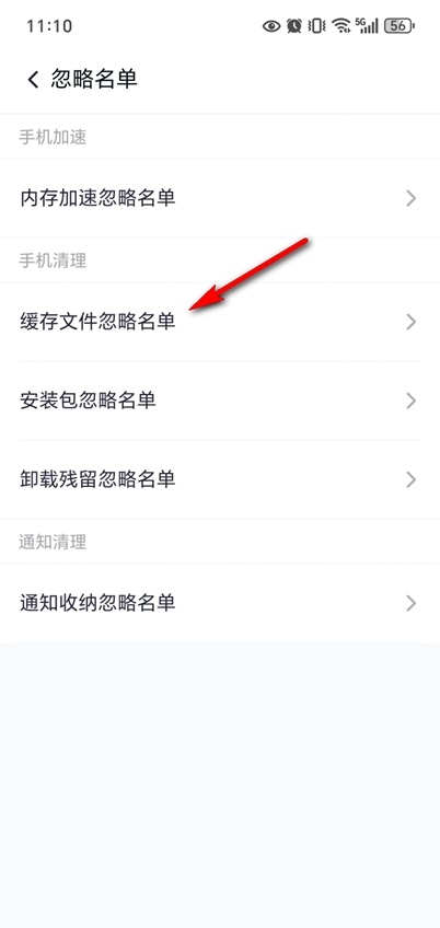 点击缓存文件忽略名单。