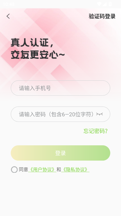 进入登录页面,这里提供了两种登录方式可以根据需求选择,如果没有账号则直接手机号验证码登录。