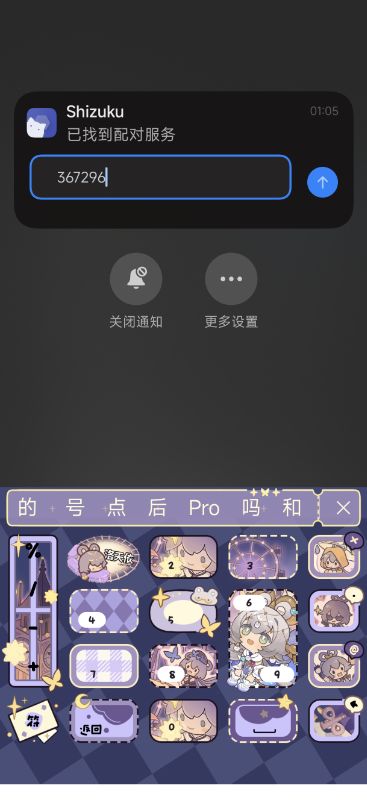 请记住弹出的通知中的六位数字,并且不要关闭弹窗,下拉通知中心,长按shizuku的通知,点击输入刚刚弹出的六位配对码