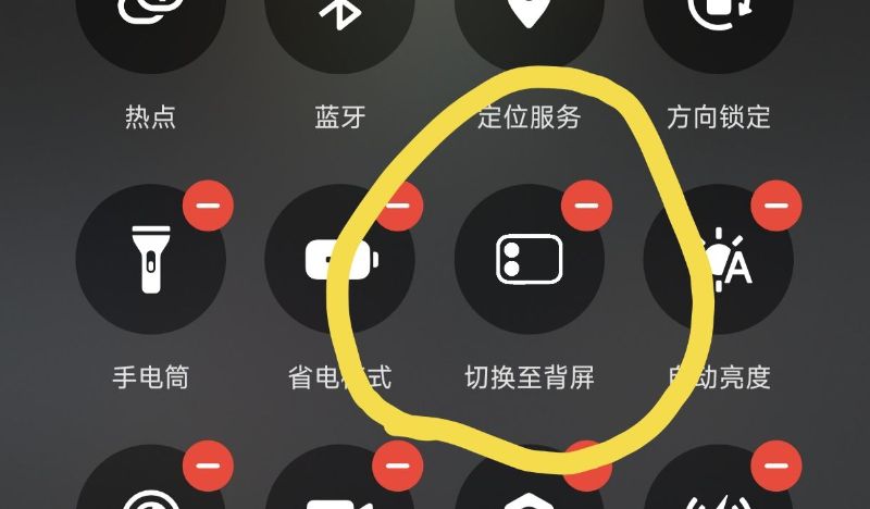 四、开始使用前,请下拉控制中心,找到最下方的编辑按钮,你可在里面找到<<切换至背屏>>和<<背屏截图>>两个按钮,请自行拖动到合适位置,每次需要使用时下拉控制中心即可使用。