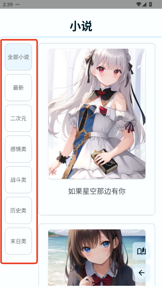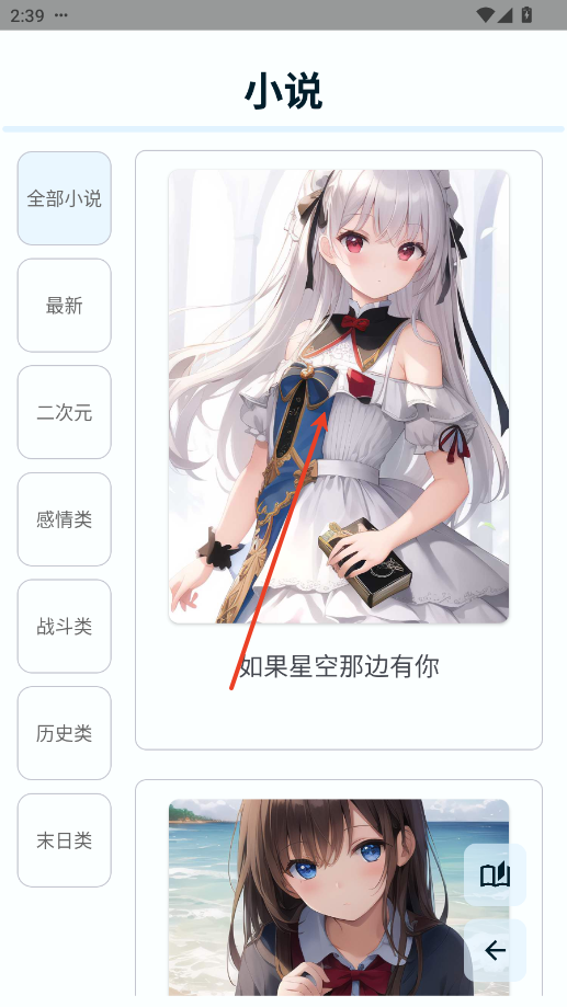 3.点击一本小说封面进行阅读。